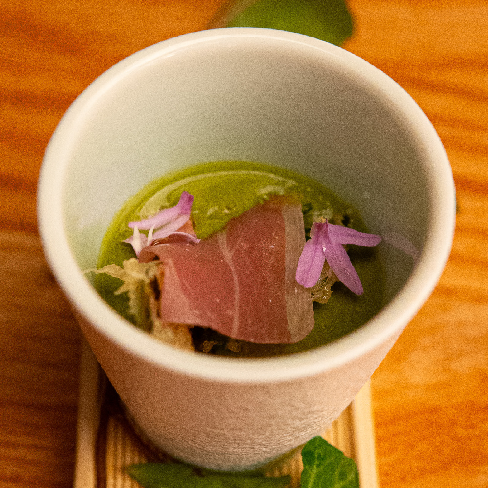 Rapeseed flower potagewith Italian hum and Ema's olive oil